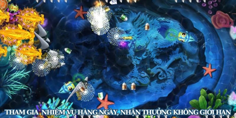 Không chỉ mang đến trải nghiệm bắn cá hấp dẫn, nền tảng còn có hệ thống nhiệm vụ hàng ngày giúp người chơi kiếm thêm xu miễn phí mà không cần nạp tiền. Mỗi ngày, chỉ cần đăng nhập vào game, bạn đã có thể nhận ngay một khoản thưởng nhỏ để bắt đầu chơi.