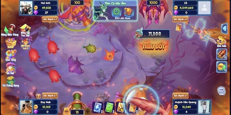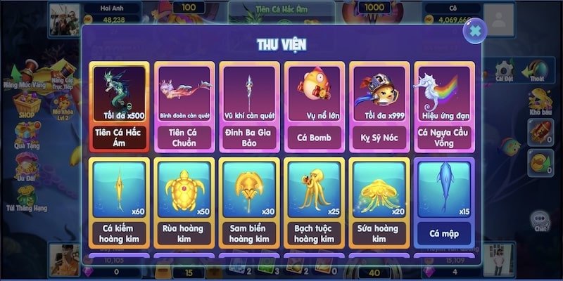 Máy chủ sẽ cung cấp cho mỗi người chơi một khẩu súng với nâng cấp đạn bằng cách thay đổi tiền cược. Đạn càng mạnh điểm bỏ ra càng cao. Khi bắn trúng 1 sinh vật biển bất kỳ bạn có thể tiêu diệt được chúng và nhận về rất nhiều phần thưởng giá trị khác.