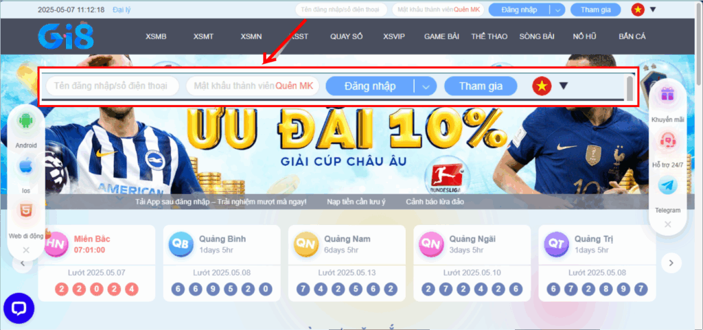 Đăng nhập Gi8 trên điện thoại (App & Web H5)