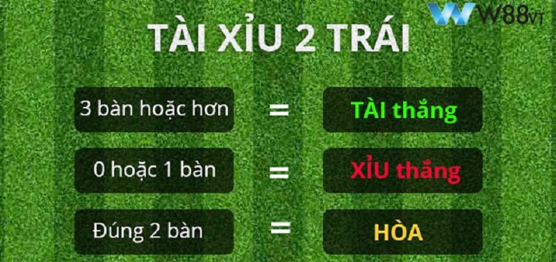 Nếu tổng bàn thắng đúng bằng 2, kết quả là hòa kèo – người chơi được hoàn lại tiền. - Nếu tổng bàn thắng trên 2, người đặt Tài thắng, người đặt Xỉu thua.