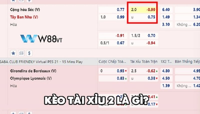 Khi tham gia cá cược tại các nhà cái như W88, người chơi sẽ thấy tỷ lệ Tài Xỉu 2 được trình bày cùng với tỷ lệ ăn cược tương ứng.