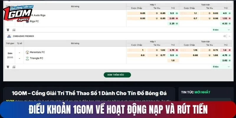 Điều khoản 1GOM xử lý các hoạt động nạp và rút tiền