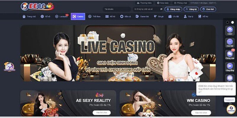 Casino trực tuyến là một trong những sản phẩm nổi bật với nhiều trò chơi hấp dẫn như baccarat, blackjack, roulette và slot. Người chơi có thể tham gia ngay tại nhà với hình ảnh sống động, âm thanh chân thực và giao diện thân thiện. Đây là lựa chọn lý tưởng cho những ai yêu thích cảm giác sòng bạc thực thụ mà không cần di chuyển.