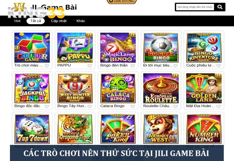 Game Bài JILI tập trung cải thiện trải nghiệm của người chơi bằng cách update liên tục các game hot với quy tắc độc đáo. Hội viên tại King33 nhất định phải thử sức với các trò chơi thú vị bên dưới đây: