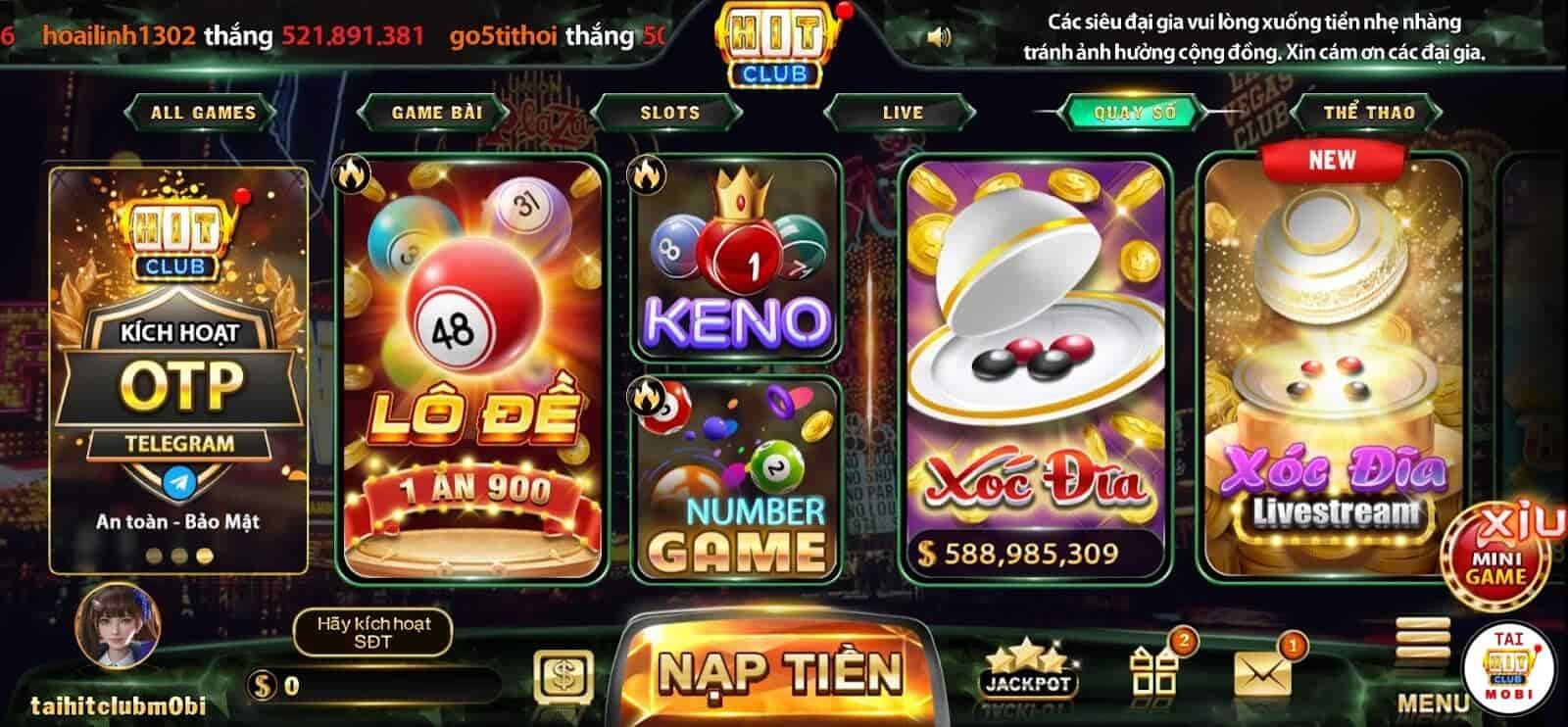 - Khi bạn chọn nạp vào sảnh lô đề trong lần đầu giao dịch, Hit Club sẽ tặng 100% giá trị nạp vào tài khoản. Có thể sử dụng để đặt cược ngay hoặc giữ lại để xoay vòng vốn.