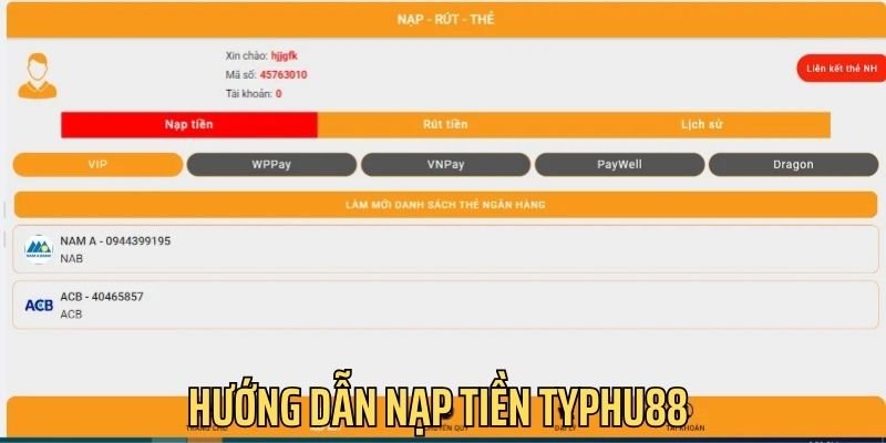 Hướng dẫn nạp tiền Typhu88 nhanh chóng và đơn giản