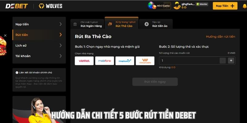 Hướng dẫn chi tiết 5 bước rút tiền Debet