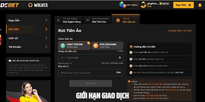 Một trong những điều kiện quan trọng khi thực hiện rút tiền Debet là số dư tài khoản của bạn. Đảm bảo rằng số dư tài khoản của bạn đủ để đáp ứng yêu cầu tối thiểu mà nhà cái đặt ra để thực hiện giao dịch. Vì vậy hội viên cần kiểm tra số dư tài khoản của mình trước khi bắt đầu thực hiện rút. Nếu số dư tài khoản không đủ, bạn sẽ không thể thực hiện giao dịch này tại Debet.