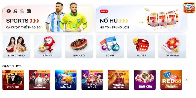 Kho game đổi thưởng tại Red 88 bao gồm tài xỉu, bầu cua, xóc đĩa, bắn cá, slot nổ hũ cùng nhiều trò chơi hấp dẫn khác. Kết quả công khai minh bạch, đảm bảo sự công bằng cho người tham gia. Nhiều tựa game quay hũ đang được yêu thích như Kho Báu Viking, Bí Mật Cleopatra, mang lại trải nghiệm giải trí đặc sắc.