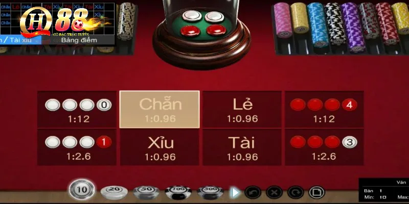 Tài – xỉu là cửa cược được nhiều người yêu thích nhờ vào tính đơn giản nhưng không kém phần hấp dẫn. Khi đặt Tài, bạn sẽ thắng nếu có 3 hoặc 4 mặt đỏ xuất hiện. Ngược lại, chọn Xỉu sẽ thắng khi có 3 hoặc 4 mặt trắng. Hình thức cược này giúp người chơi đưa ra quyết định nhanh chóng và dễ dàng dựa vào trực giác hoặc lịch sử ván chơi.